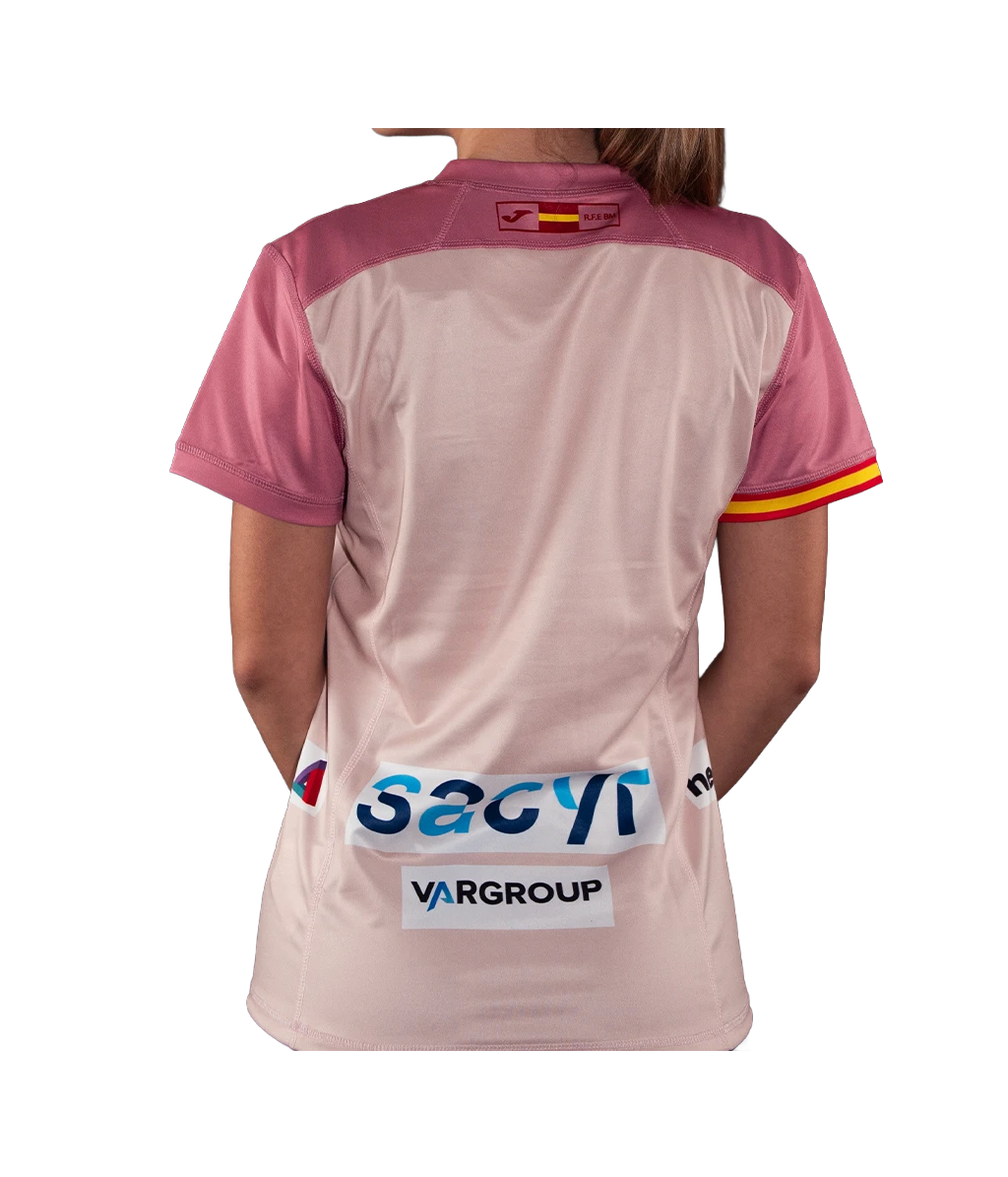 Apoya a la selección con este pack de la camiseta oficial femenina Joma España Balonmano 2026 en color rosa, correspondiente a la 2ª equipación de la Federación Española de Balonmano.